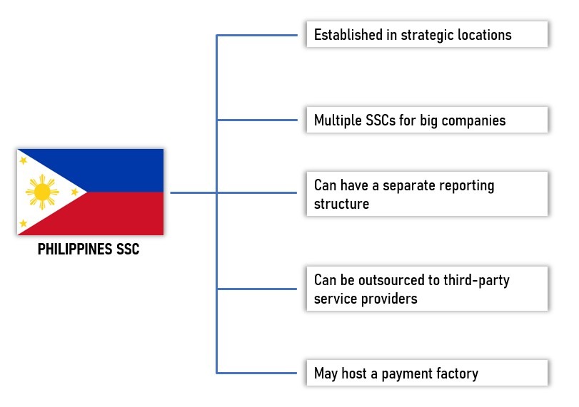 The location of the SSC can be anywhere but choosing the location depends on various factors. An SSC is usually established in countries where labour and office cost is low. Also, countries which provide attractive tax structure with good infrastructure are chosen locations of establishing an SSC. For very big companies there can be multiple SSCs handling separate tasks for the entire company group. An in-house SSC can have a separate reporting structure and hierarchy handling large volumes of repetitive tasks. Smaller companies can even outsource their SSC to third party service providers to save expenses and human resources. An SSC may host a payment factory which handles centralized payment and collections for a company.